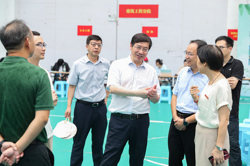 当天上午,绍兴市教育局党委委员、二级调研员马成永,校党委委员、院党委书记梁瑜,院长沈红卫在办公室、学工部负责人陪同下,深入迎新现场检查指导工作,热情迎接2024级新生,关心同学们报到情况,亲切看望慰问学院教师、迎新志愿者与一线工作人员。“你们辛苦了!”“工作还顺利吗?”“感谢大家的付出!”在各分院迎新服务点,马成永一行不时驻足,与工作人员亲切互动交流,关切询问新生报到进展情况,详细了解迎新特色、服务举措等,对各分院扎实周到的迎新工作表示充分肯定,向志愿者和工作人员的辛勤付出表示诚挚慰问和感谢。