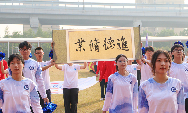 8时,第十七届综合运动会正式开始。伴着《运动员进行曲》的激昂旋律,国旗方阵、会旗方阵依次进入会场,各分院代表队以专业特色与创意编排,呈现充满激情与活力的表演。在嘹亮的国歌声中,全体师生面向五星红旗行注目礼,齐声高唱中华人民共和国国歌。
