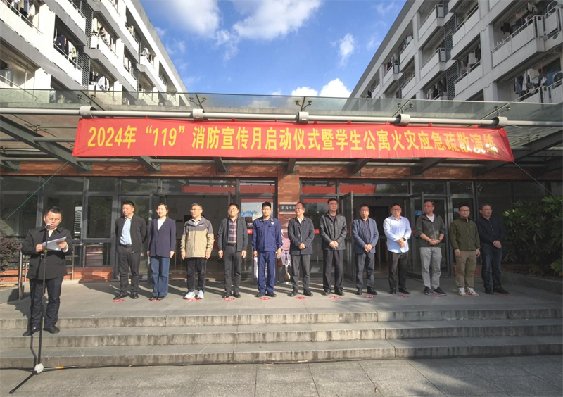11月6日下午,学院在南区学生公寓举行2024年“119”消防宣传月启动仪式暨学生公寓火灾应急疏散演练。学院党委副书记石旭明、警务站警务专员张幼良、越城区消防救援局东浦应急消防管理站副站长袁家力、相关职能部门及各分院分管书记、越城区消防救援局作战员、学院义务消防员、校园义警、公寓管理员、书院自管会等300余人出席仪式。保卫处负责人主持仪式。