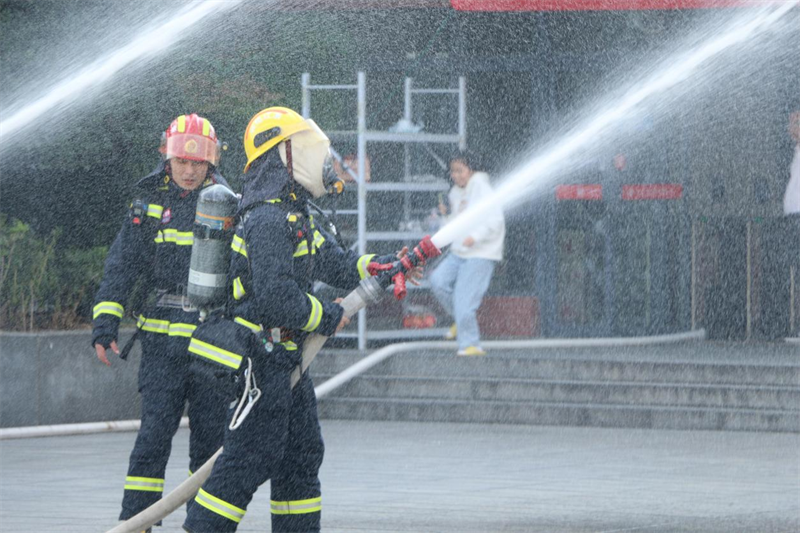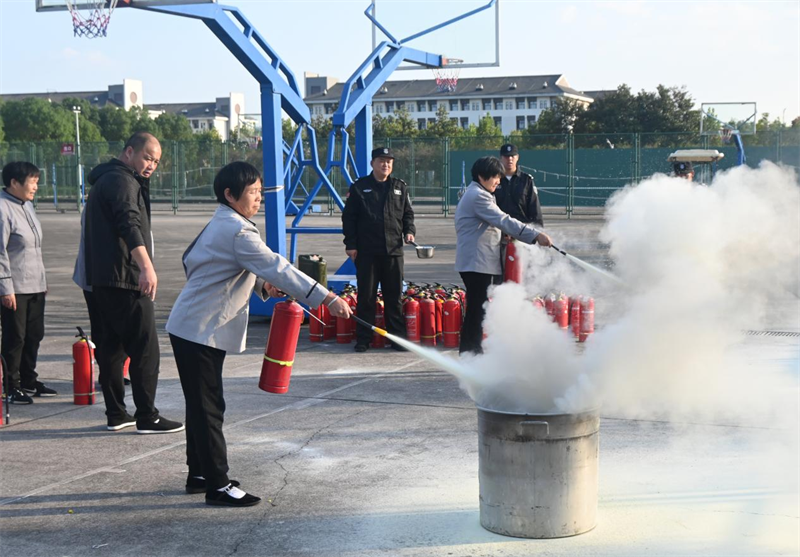 本次活动分为2024年“119”消防宣传月启动仪式、学生公寓火灾应急疏散演练和消防灭火技能实战演练三个阶段进行。活动过程中,袁家力向学院义务消防队授旗,石旭明宣布学院2024年“119”消防宣传月正式启动,相关人员介绍本次消防宣传月活动安排、观摩火灾应急疏散演练、讲解灭火器使用技巧等。