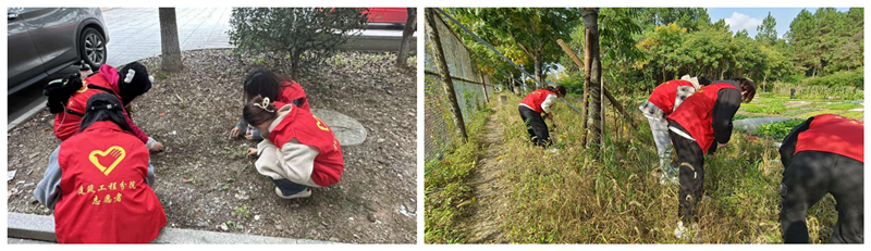 分院以小组为单位,对校园内“加拿大一支黄”等入侵植物进行清除,在美化校园环境、保护生物多样性的同时,加强学生对相关专业知识的了解。党员们深入教学楼每个角落清理烟蒂,呼吁师生深刻认识乱扔烟头的危害性,用实际行动守护校园。