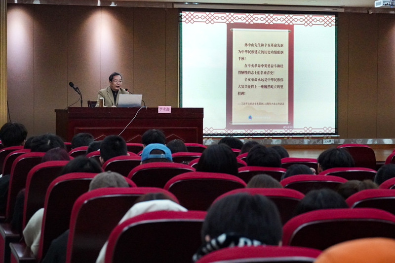 2025年3月12日是中国民主革命伟大先驱孙中山先生逝世100周年。当天,学院“红色讲堂”第15讲“辛亥革命与绍兴”在红色学府红色报告厅开讲。绍兴文史专家、绍兴文史馆副馆长、绍兴市委宣传部原常务副部长、绍兴市政府原副秘书长李永鑫受邀作专题讲座。马克思主义分院教师和学生代表聆听了讲座。