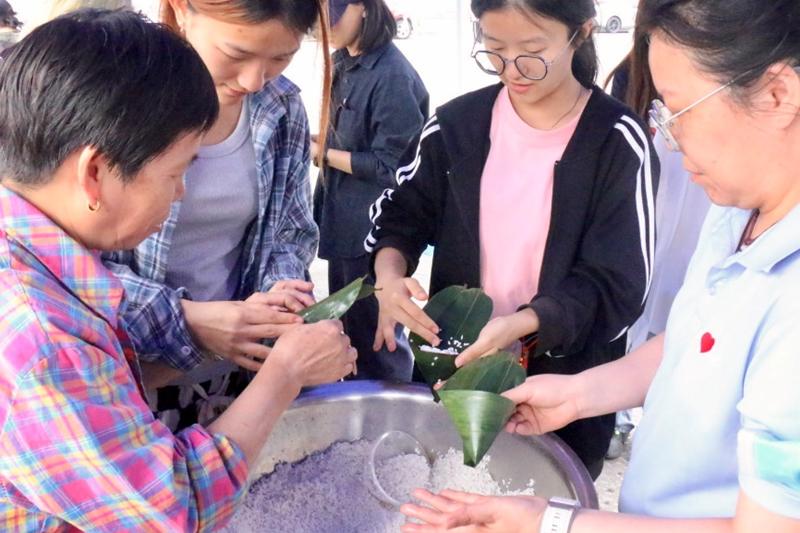 活动现场,粽叶的清香与廉洁的清风交织,营造出独特的氛围。翠绿的粽叶、晶莹的糯米、殷红的枣子整齐陈列,师生们围站在长桌前,共同体验“包廉粽”。清新的粽叶香扑面而来,大家将寓意“洁身自好”的糯米与象征“严守底线”的红枣填入其中,清廉之风在指尖流转,增添了浓浓的传统氛围。