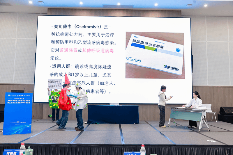 本次大赛以“山海共富‘药’科普”为主题,旨在推动药学科普知识广泛传播。情景表演《感冒大作战》以贴近生活的剧情,生动科普“感冒勿乱用药”的健康知识,巧妙地将专业的药理知识转化为通俗易懂的舞台表演,直观呈现滥用药物的潜在风险。药学科普海报凭借新颖的设计理念和严谨的科学内容,从众多作品中脱颖而出。