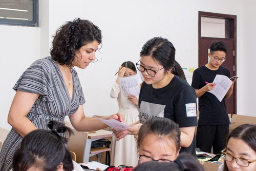 自由互动环节,同学们争先恐后地举起手,希望和Marlaina老师进行一对一的交流。“如何解决中外文化差异对教学的影响?”“如何解决自己的教学短板问题?”“如果我的学生都很害羞我该怎么办?”……面对同学们热情的提问,Marlaina老师向大家讲述了自己的亲身教育经历中碰到的困难和经验,有条不紊的列举了“finish line”(制定严格的活动结束时间)、多样活动、利用TED TALKS、“a ticket out the door”(即向老师说出本节课学习要点才有离开教室的资格)等教学原则,分析了一名合格的外语教学老师所需要具备的基本素质。听到Marlaina老师妙语连珠的回答,场下的同学们也不时发出了阵阵赞叹声和掌声。“因材施教是教学中最巧妙的技巧,值得我们认真学习。”Marlaina老师说。