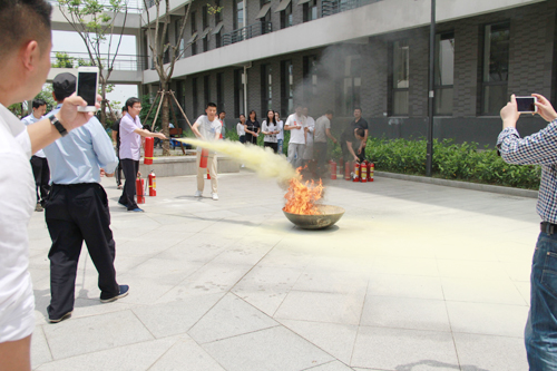 保卫处负责人对全院实验室管理老师也从灭火器分类、用途、正确的操作方法与程序等方面给大家进行了详细的讲解,并指导大家进行灭火实战演练。