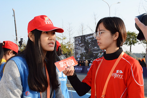 早上7点,第一批运动员到达,我院20名全半马分叉路口的志愿者们站在跑道中间,不断按响手里的喇叭:“全程马拉松请跑左边,半程马拉松请跑右边……”及时进行提醒引导。50多名场外移动厕所志愿者,在每个移动洗手间入口引导观众排队。“从最初领取参赛物品,到比赛当天起点处的安检、引导,比赛途中的补给、分流,再到终点处的搀扶、鼓劲,这一路我都能感受到你们的热情。”参加完半程马拉松赛的市民李幼娜笑着对我院的志愿者说道。