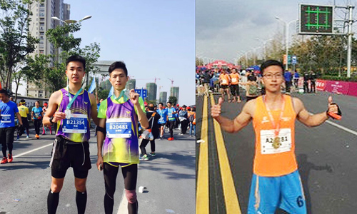 王城锋,是我院田径队的运动员,曾多次刷新学院万米比赛记录。对于此次参加“全马”比赛的表现,他表示:“前面的部分挺不错的,破了自己的半马记录,但跑到22公里时肌肉开始抽搐,32公里时腰部以下更是全部抽筋,但我不愿放弃,大家都在等我,这次挑战我一定要坚持到最后,到达终点的那一刻,真心给自己点赞。”