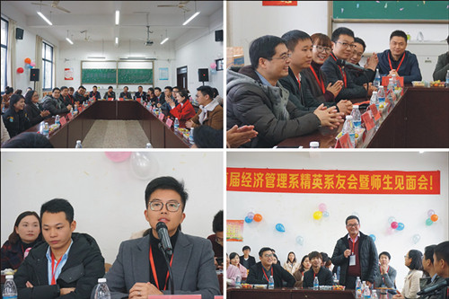 当天上午,首届经济与管理系系友理事会会议在教学楼2幢414会议室举行。分院领导、教师代表以及18位理事会成员参加会议,分院学工办负责人主持会议。会议审议通过了《首届经济与管理系理事会章程》,选举产生首届理事会会长、副会长以及秘书长。当天下午,首届经济与管理系精英系友会师生见面会举行,理事会会长、原市场0702班田陈锋、教师代表及其他系友会成员纷纷发言,共同为“经管”的明天建言献策,贡献自己的智慧和力量。