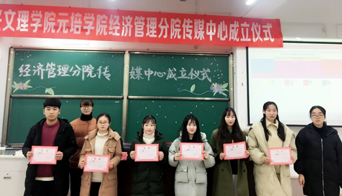 1月11日中午,经济管理分院传媒中心成立仪式在1号教学楼109室隆重举行。分院学工办负责人、第十一届学习委员代表、各学生组织代表、班级团支部代表参加成立仪式。仪式由传媒中心相关负责人主持。