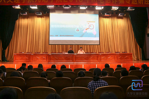 近年来,高校大学生已成为犯罪分子的重点目标,电信网络诈骗、网贷(校园贷)等现象在高校中逐渐增多。为切实加强对我院学生防电信诈骗宣传教育,有效压降校园电信网络诈骗案件发生,结合绍兴市教育局高校反诈宣传日活动部署,4月2日下午,我院特邀绍兴市公安局刑侦支队刘宇警官在师生活动中心报告厅作防电信诈骗专题讲座。全院辅导员、班主任、学生代表共400余人聆听讲座。保卫处负责人主持讲座。