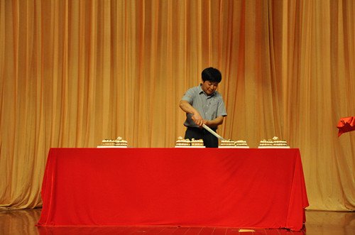 毕业蛋糕仪式上,分院院长切毕业蛋糕