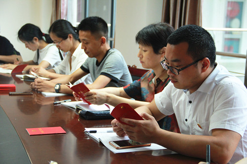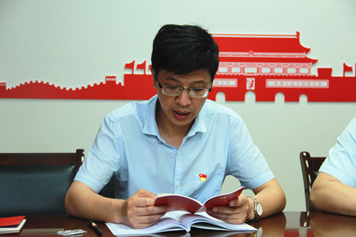 为深入学习贯彻习近平新时代中国特色社会主义思想和党的十九大精神,持续深入推进“两学一做”学习教育常态化、制度化。6月20日下午,机关党总支第一党支部在图书馆830会议室开展“悟初心、强党性,作改革发展先锋”主题党日活动。支部全体党员参加学习。支部书记主持活动。