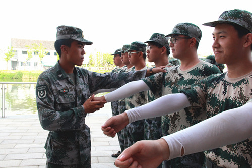 盛夏八月的训练场,骄阳似火,酷热难当,参加军训的同学们挥洒汗水,汗湿衣背,皮肤晒黑了、衣服浸湿了、喉咙喊哑了……短短几日的军训时光,同学们不喊苦不喊累,斗志满满,俨然就是一名名真正的军人,但当彼此间每每谈及军训印象时,同学们首先聊到的永远是为同学们开展训练的承训教官。每天清晨至夜幕降临,他们认真履行职责,以高标准要求学生,不厌其烦用严格的训练、严谨的作风、坚韧的精神、温情的陪伴与关怀时刻为同学们作出最好的示范,带给同学们无限感动与崇敬。
