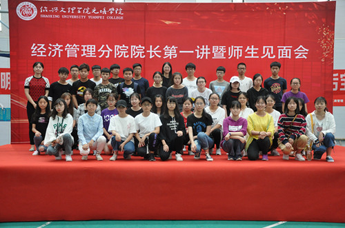 9月9日下午,经济管理分院2018级新生院长第一讲暨师生见面会在学院大学生活动中心隆重举行。分院院长杨文兵、党总支书记陈晖、党政相关负责人、教师代表、新生班主任及全体新生参加会议。会议由分院副院长陈金东主持。