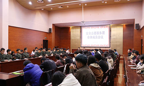 为进一步巩固安全教育工作成效,扩大安全宣传教育覆盖面,深化“平安校园”建设工作。3月14日晚上,安全志愿服务团(简称服务团)全体成员第一次会议在图书馆828会议中心召开。保卫处全体成员、物业安保公司班长、治保会全体成员、校园督察队全体成员及各分院(及书院)安全教育办公室主任(副主任)100余人参加会议。会议由保卫处相关负责人主持。