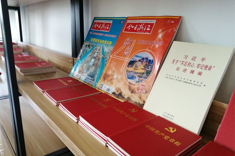 “通过建立‘党员书吧’来切实加强对党员的教育和培训,鼓励党员同志多读书、读好书,营造良好的读书氛围,深入推进‘不忘初心,牢记使命’主题教育常态化、制度化、规范化。”据分院党总支负责人介绍,“党员书吧”面向全体师生开放,目前已有书籍书刊包括《中国共产党章程》、《党建研究》、《习近平关于“不忘初心、牢记使命”论述摘编》、《今日浙江》、《浙江学刊》等。