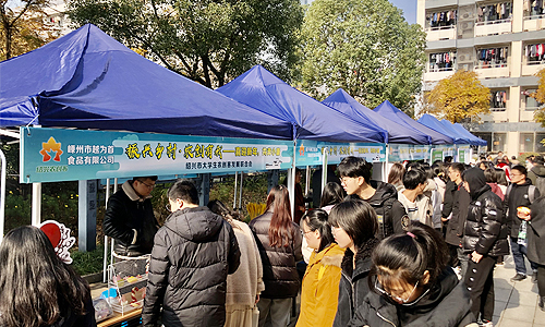 12月24日-25日,由学院资产经营公司和绍兴市大学生农创客发展联合会共同主办的“‘振兴乡村,农创有我’——优质农产品进校园活动”在群贤楼食堂广场和兴越楼食堂广场火热举办。本次活动共有绍兴农创客科技有限公司、诸暨市东山圩家庭农场、嵊州市越为首食品有限公司等八家单位参展。