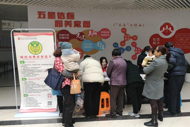 在红建社区、镜水社区、大渡社区、新双梅社区、后梅社区以及双渎社区六个校外宣传点,法学专业学子设立宣传摊点,搭建宣传展架,向社区居民发放宣传手册。为使社区居民积极参与活动,还特别设置了有奖问答活动。大家利用自己所学的专业知识,为社区居民解答问卷中的疑问以及生活中消费权益维权知识。在校园南区和北区食堂,法学专业学子以在食堂门口设立摊位、发放宣传材料、进行调查问卷等方式向学生和有关人员宣传消费者权益知识,介绍讲解“3·15”主要内容与发展历程,帮助消费者更清晰的了解维权的重要性和必要性。