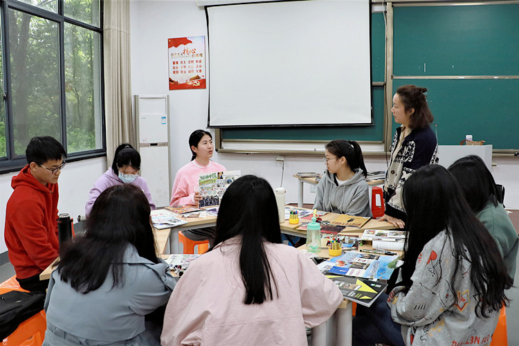 除了说和写,你还会用怎样的形式表达你的“爱”呢?4月8日,在学院“彩虹心理读书会”上,同学们翻动各式各样的杂志,以“家国之爱”为主题,用自己的双手双眼找寻文字画面,拼贴出一幅幅心理画报。