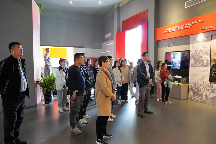 在俞秀松纪念馆内认真学习俞秀松烈士生平事迹