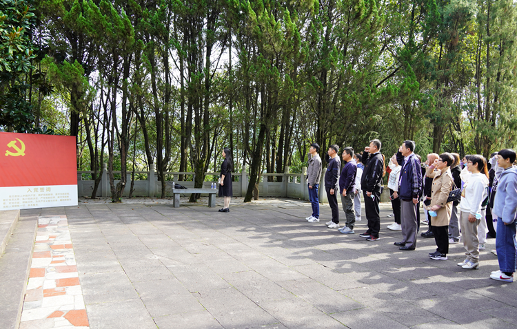在俞秀松烈士陵园前进行入党宣誓