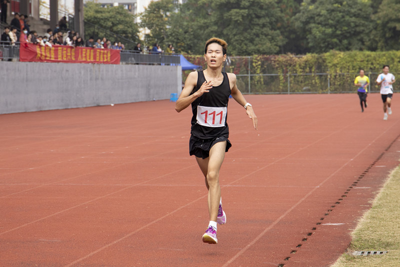 发令枪响,万米长跑正式展开。起圈压步,找稳节奏,首次挑战万米长跑,与卫冕冠军郑超丞同台竞技,工管2001班谢志轩调整心态,漫漫征程,一路领跑。凡跑一圈,他便抬腕看表,不断调整步频,适应比赛节奏,最终以38分33秒79的成绩第一个冲过终点,创个人历史最佳成绩。
