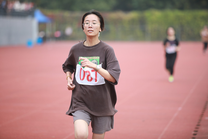 决赛场上,护理2201班王艺洁在一开始便占据了相对靠前的位置,在确定相对优势后,不断调整步伐和跑步节奏。最后200米,王艺洁迅速发力,全力冲刺,与其他对手拉开距离,并将优势保持到终点,以6分39秒98的成绩荣登女子1500米榜首。