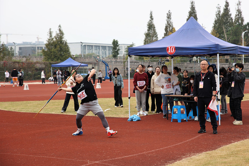 拿起标枪、旋转踝关节,慢慢加速,奋力一掷,伴随着一声“嘿”,标枪迅速向前飞去,结实地扎进土里。预赛中,初次参赛的工商2221班高亦涵以第一掷25米12的成绩强势出线,轻松闯入决赛。在决赛的最后一掷中,她更是投出26米98的成绩,成功锁定金牌,登上女子标枪项目的最高领奖台。