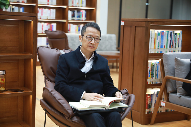 沈红卫在清幽书香中娓娓道来自己的读书经历,从读书使人知书达理、读书让人安静和自我调节、读书让人学会独立思考和思辨、读书是未来生存的能力等四个方面交流读书的意义。他语重心长地寄语在座学生,要充分认识读书的重要性,利用大学美好时光,调整自身节奏,好好读书,通过读书了解时代发展方向,有效建立自己的竞争力,为踏上社会做好准备。