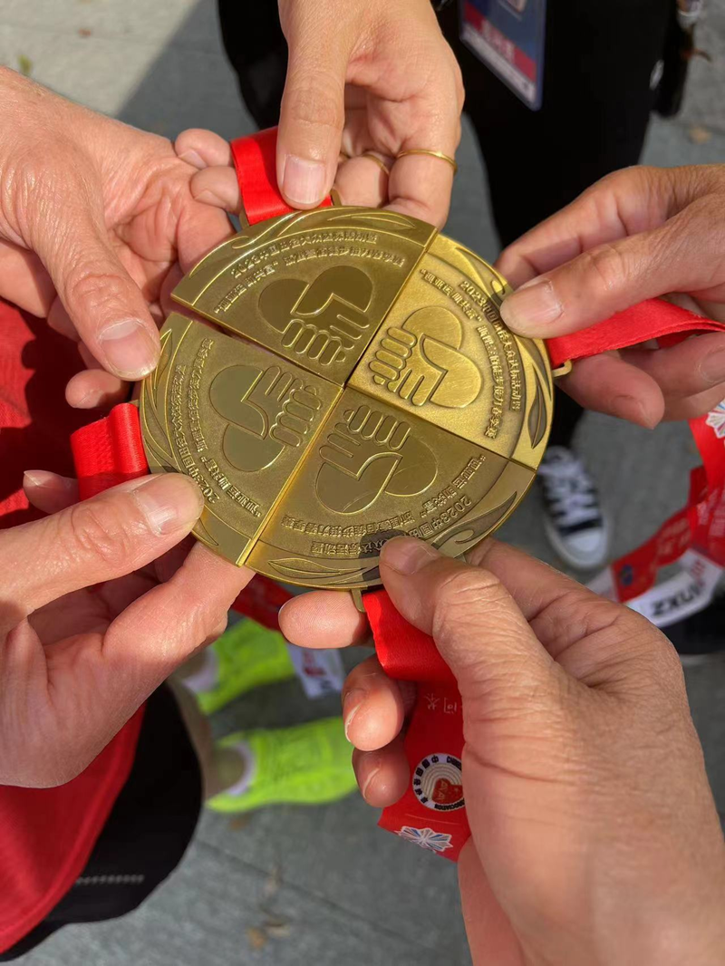 赛道全程3.88公里,运动员矫健的身影穿梭于风景如画的茶山之间,引起了沿途观众的阵阵欢呼。在风景秀丽的光明寺水库大坝,完赛的健残共融组运动员与健身大众组的运动员一一击掌鼓劲,此起彼伏的加油呐喊声,回荡在光明寺水库的上空。比赛现场,两位老师还积极参与了助残任意捐活动。