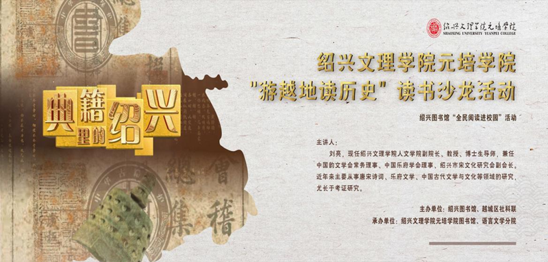 为迎接“4.23世界读书日”,解读越地历史经典,解码越地文化,感悟绍兴浓厚历史文化底蕴,4月19日下午,由图书馆和语言文学分院联合承办的学院“游越地读历史”读书沙龙活动在国际文化交流中心报告厅举行。绍兴图书馆副馆长宋嵩,越城区社科联副主席王小梅,绍兴文理学院人文学院副院长、中国韵文学会常务理事、中国乐府学会理事、绍兴市宋文化研究会副会长刘亮,学院副院长周思红和党委组织宣传部、语言文学分院等相关负责人出席活动。此次讲座为绍兴图书馆“全民阅读进校园”系列活动之一。