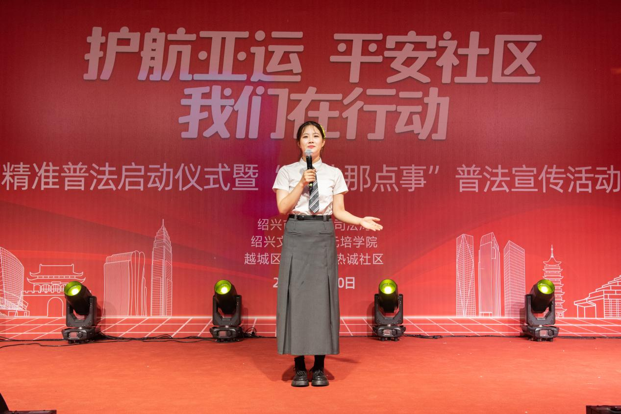 为护航第19届亚运会和第4届亚残运会,进一步加强居民的法律意识,推进社区法治建设,营造全民尊法、学法、守法、用法的浓厚氛围,同时发挥高校在社会普法工作中的积极作用,鼓励学生积极投身于基层治理一线,增强能力本领。近日绍兴市越城区司法局、绍兴文理学院元培学院、越城区东浦街道热诚社区,共同开展“护航亚运,平安社区,我们在行动”精准普法启动仪式暨“物业那点事”普法宣传活动。