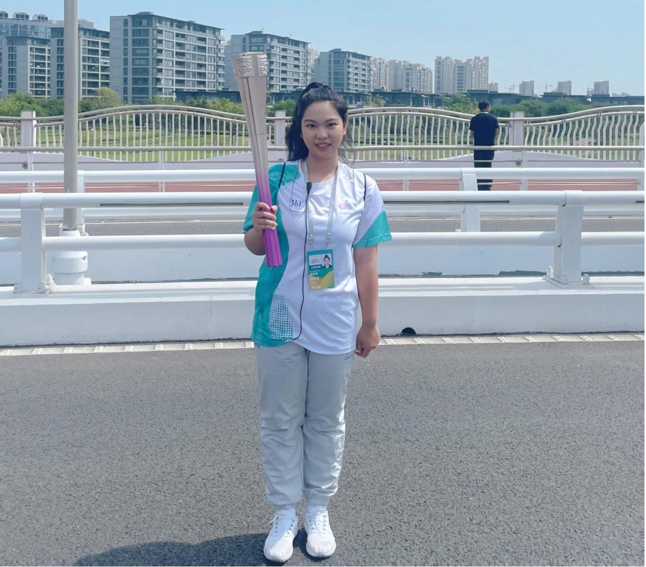 当我来到指定的点位时,整个城市已经沉浸在欢乐和期待中。随着警车的鸣笛声,火炬传递队伍出现在我眼前。我看到火炬手高举着火炬,火焰在阳光下闪烁。当我看见我所负责的火炬传递给下一位的时候,我内心充满了激动和自豪。火炬传递绍兴站圆满结束,期待亚运会的顺利召开!