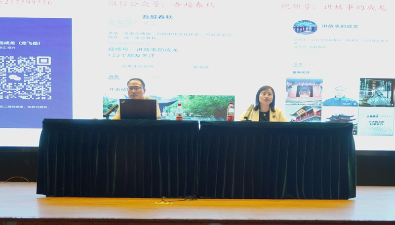 5月17日晚,由绍兴图书馆主办,我院图书馆、院团委联合承办的读书沙龙活动在国际文化交流中心报告厅举行。活动邀请绍兴文史研究学者岳成龙作题为“在名人名诗中玩转名城绍兴”专题讲座。讲座由学院副院长沈玮主持,全院400余名师生参加讲座。