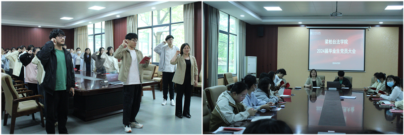 毕业生党员大会上,全体党员重温入党誓词,回顾入党历程,体悟入党初心。马克思主义与法学院党总支负责人悉心叮嘱全体党员不忘初心,牢记使命,铭记党组织的教诲;以心中红星,献礼中华,在工作岗位上担当青年党员的责任和使命;以初心敬党心,以誓言敬理想,以努力敬时光,不负国家不负党。