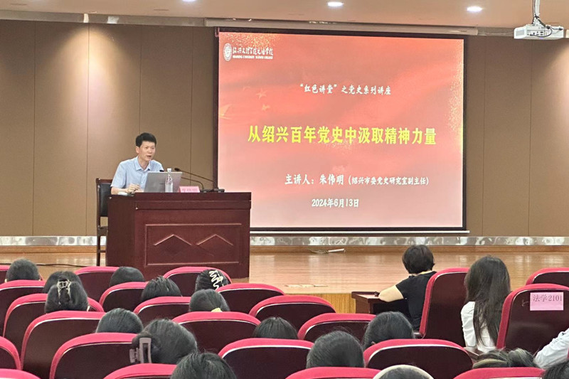6月13日,我院“红色讲堂”之党史系列讲座开讲,特邀绍兴市委党史研究室副主任朱伟明作题为“从绍兴百年党史中汲取精神力量”专题讲座。