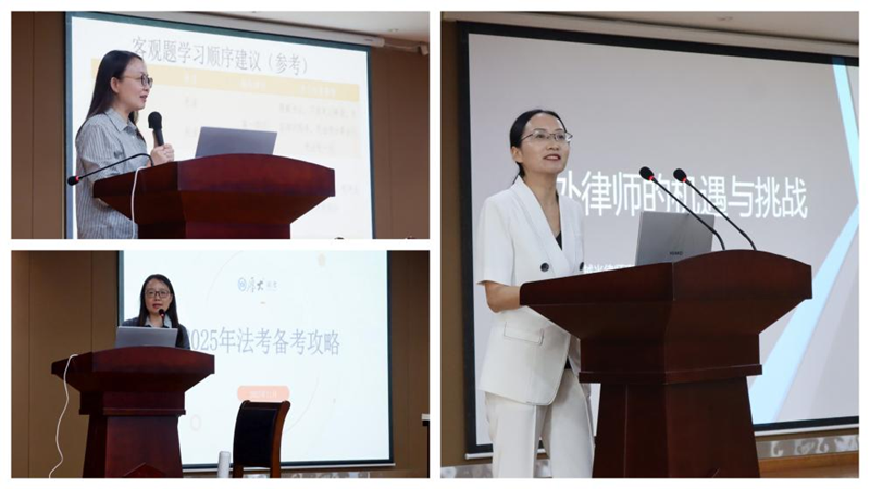 分院邀请考研机构、法考机构、考公机构累计开设讲座10余场,通过讲座不仅提升同学们的法律知识水平,更激发备考中的热情和信心,为同学们未来就业发展提供专业指导和动力,促进分院学风建设,落实落细学生职业规划教育。