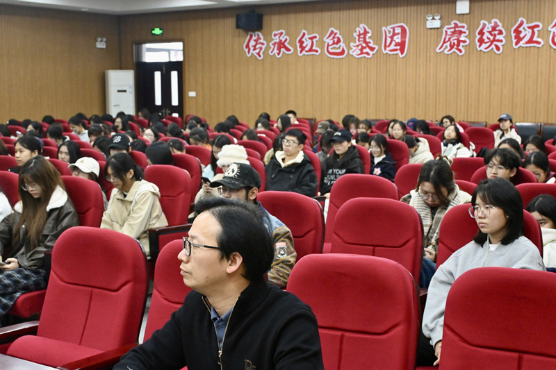 郑红光通过讲解丰富的党史故事和分享自身23年军旅生涯,由浅入深地阐释大学生应树立的正确人生观,尤其是要树立正确的恋爱观、权力观、职业观等,激励同学们从现在起,不断追求远大理想,坚定崇高信念,领悟人生真谛,把握人生方向,成长为担当民族复兴大任的时代新人。