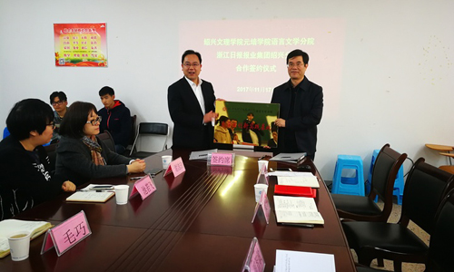 绍兴文理学院元培学院与浙报集团绍兴分社联合,将浙报集团绍兴分社作为元培学院学生实践基地,11月17日实践基地正式挂牌。浙报集团绍兴分社社长周智敏与与绍兴文理学院元培学院党委书记梁瑜共同为实践教学基地挂牌。
