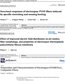 日前,我院纺织服装与艺术设计分院功能性纤维与智能纺织品重点实验室楼利琴教授团队李想博士通过研究静电纺纤维的微观结构和宏观形貌,设计制备了具有优秀的防水透湿透气性能的新型微纳米纤维材料,拓展了其在运动用品、生物防护材料、生物敷料等领域的应用。相关系列成果依托绍兴文理学院元培学院功能性纤维与智能纺织品重点实验室,李想博士为第一作者兼通讯作者在国际期刊Journal of polymer science、Polymer for advanced technologies、Polymers发表。