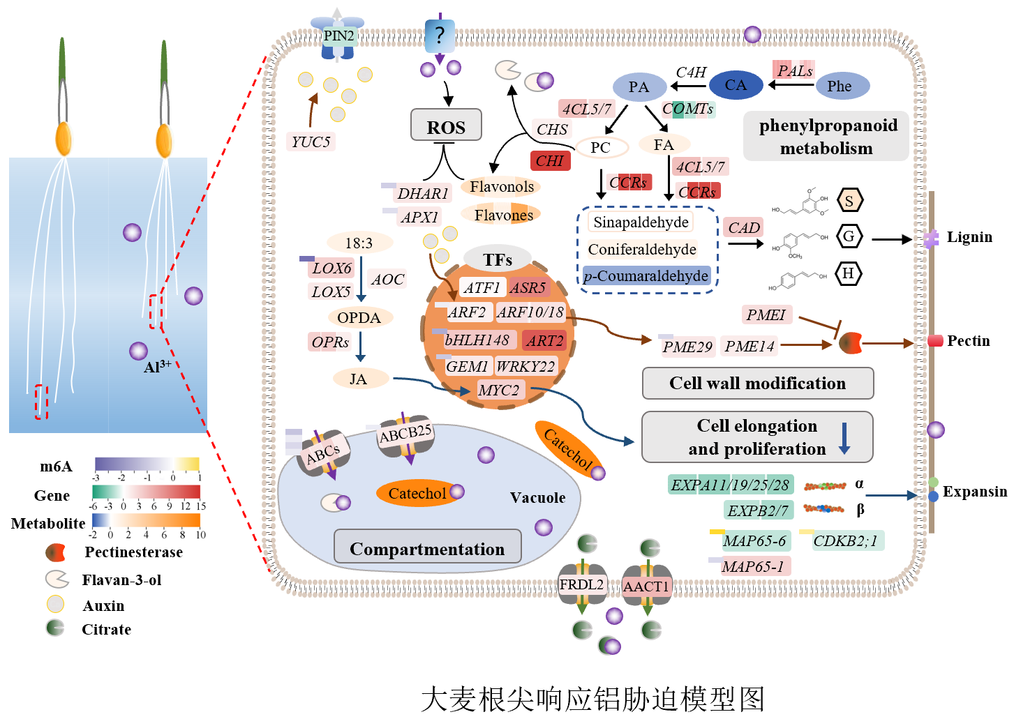大麦作为全球重要的粮食作物之一,广泛应用于食品、饲料及酿造产业,其生长和产量受多种环境因素影响,其中酸性土壤中的铝胁迫尤为显著。铝离子的存在对大麦根系发育产生抑制作用,直接影响作物的生长和产量。为深入探讨大麦在铝胁迫下的生理反应及其分子机制,建筑工程分院吴丽元博士及其团队开展了创新性研究。该研究采用前沿多组学方法,包括全基因组m6A测序、转录组及代谢组学,系统揭示了大麦根尖在铝胁迫下的早期响应机制。