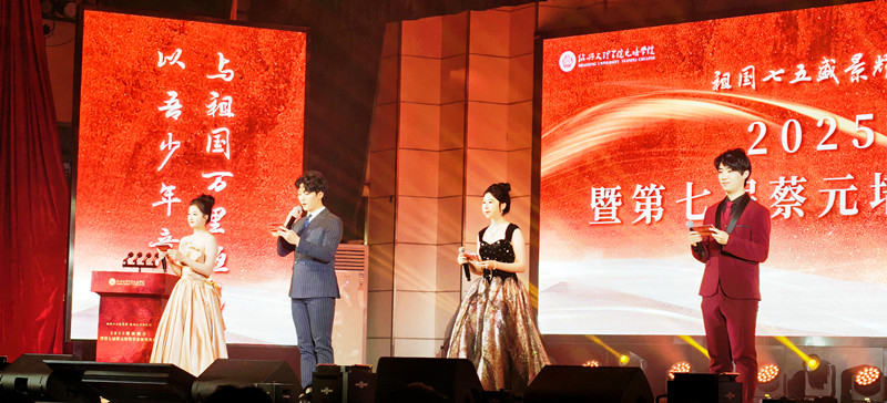 华灯初绽,弦歌起。本场晚会分为 “古韵新声 共庆华诞”、“筑梦山海 强国有我”和“璀璨新程 青春启航”三大篇章。乐器大合奏《梦回临安》拉开晚会帷幕,舞蹈《茶飘香》流淌着千年华夏的典雅韵致,走秀《Sing It Back》闪耀现代时尚的活力光芒, 歌曲联唱《少年》《送你一朵小红花》激昂嘹亮,舞蹈《青丝白发》婉约悠扬,朗诵《盛世华章,国之荣光》铿锵有力,古筝合奏《市集》满溢生活的烟火气息,舞蹈《鼓声响起的地方》燃烧奋进的炽热激情,合唱《身骑白马》传递梦想的灵动音符。晚会在歌曲对唱《幸福中国一起走》的悠扬旋律中圆满收官。