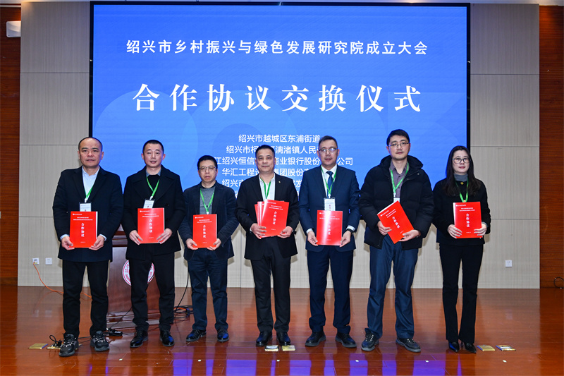 建筑工程分院与合作单位越城区东浦街道、柯桥区漓渚镇人民政府、浙江绍兴恒信农村商业银行股份有限公司、华汇工程设计集团股份有限公司、绍兴市越城区农创客发展联合会、越城区鉴湖街道坡塘村股份经济合作社交换合作协议。