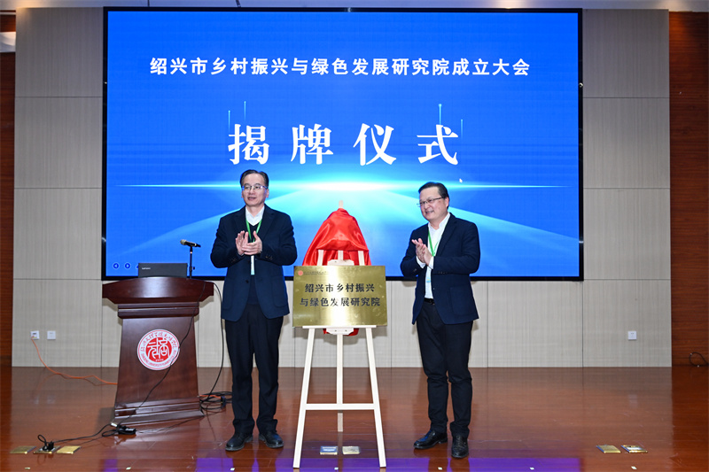 张宏和吕田共同为绍兴市乡村振兴与绿色发展研究院揭牌。