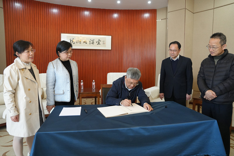 报告会前,冯长根一行实地走访调研红色学府和学院办学情况展,并为“镜湖大讲堂”题词。