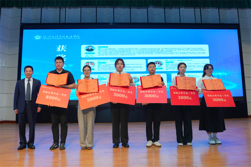 翁国民教授为首届“梁柏台奖学金”获奖同学颁发证书
