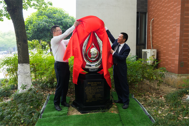 翁国民教授和陈均土教授共同为梁柏台教育发展基金纪念雕塑揭幕