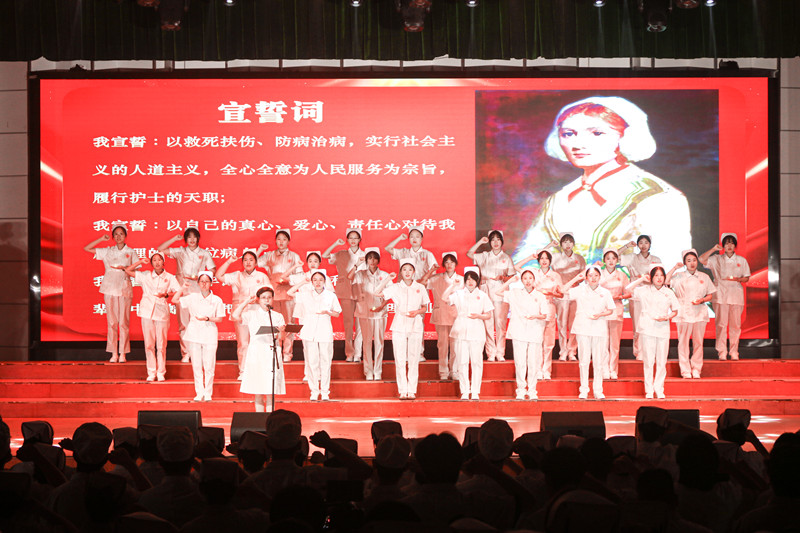 晚会现场,梁瑜为最美“护生”颁奖。李黎、石旭明为礼仪风采大赛获奖队伍颁奖。学工部、团委负责人为护理学科竞赛获奖班级颁奖。优秀校友朱淑婷发言。护理学子进行礼仪风采展示。授帽仪式上,护理学子佩戴圣洁燕帽,手持点燃象征南丁格尔精神的蜡烛,在老师的领誓下庄严宣誓。