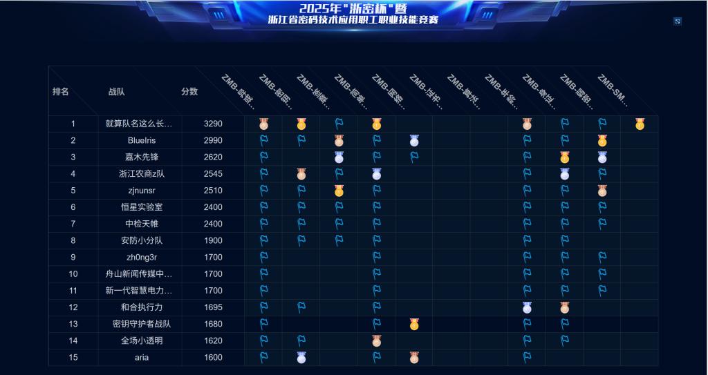 6月27日,2025年“浙密杯”暨浙江省密码技术应用职工职业技能竞赛在杭州电子科技大学下沙校区圆满落幕。由我院计算机科学与技术专业学生组成的“就算队名这么长也会有人跟着念”战队代表绍兴市参赛,在与全省专业选手的激烈角逐中脱颖而出,夺得技能攻防赛单项冠军及赛事总成绩第一名两项殊荣。